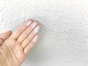 1つ目は、チョーキング現象です。チョーキング現象とは、外壁などを手で触った時に白い粉のようなものが手に付着することを言います。防水機能が低下し、放っておくと雨漏れが発生してしまいます。